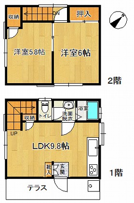 2階建の一戸建て貸家です!全室洋室で綺麗な室内です。駐車2台分無料!建物周囲の草ひきなどは、入居者が定期的に行ってください。